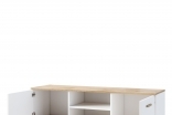 Łączy w sobie praktyczność z ponadczasowym stylem, oferując nie tylko dużą ilość miejsca do przechowywania, ale również wyjątkowy wygląd, który wzbogaci każde wnętrze. Jej uniwersalny design sprawia, że doskonale odnajdzie się zarówno w nowoczesnym salonie, przytulnej sypialni, jak i w pokoju młodzieżowym czy dziecięcym, dodając przestrzeni lekkości i harmonii. Dzięki swojej prostej formie i stonowanej kolorystyce z łatwością dopasuje się do różnych aranżacji wnętrz, tworząc spójną i stylową całość.