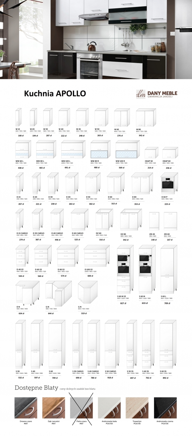 Uwaga! Ceny szafek podane bez kosztu blatu!