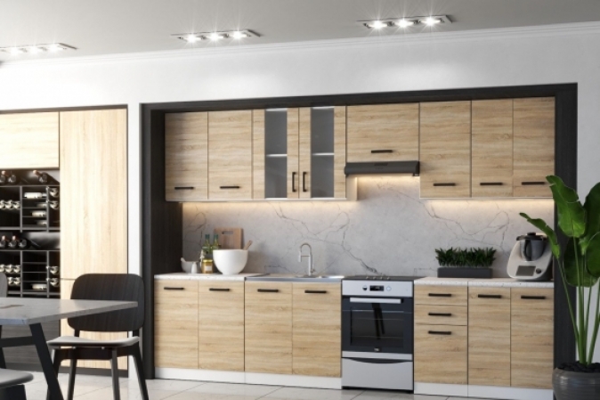 MEBLE KUCHENNE KUCHNIA MODUŁOWA ZESTAW SZAFKI BLAT JOLA 3,2M DĄB SONOMA