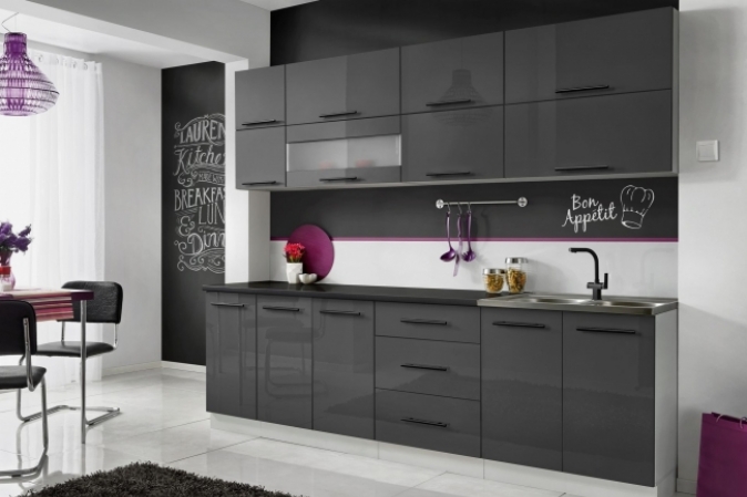 MEBLE KUCHENNE KUCHNIA SZAFKI MODUŁOWE SZARY POŁYSK 2,6M RICO