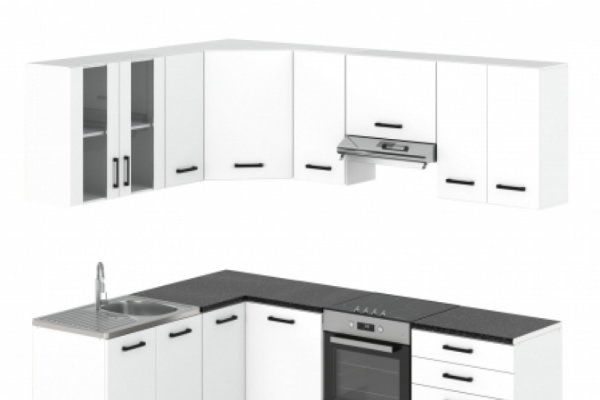 MEBLE KUCHENNE KUCHNIA ZESTAW SZAFKI BLAT JOLA NAROŻNA BIAŁY MAT