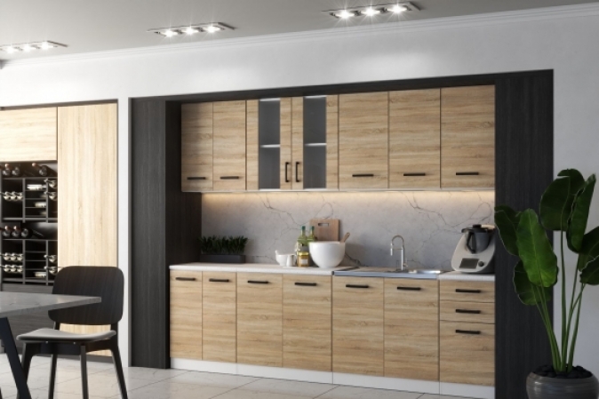 MEBLE KUCHENNE KUCHNIA ZESTAW SZAFKI MODUŁOWE BLAT JOLA 2,6M DĄB SONOMA