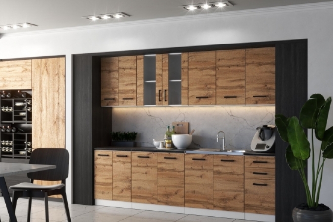 - fronty wykonane z płyty laminowanej grubości 16 mm w kolorze dąb wotan