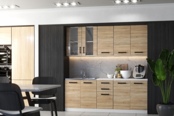 Nowoczesny i praktyczny zestaw mebli kuchennych JOLA 2 m to doskonały wybór do każdej kuchni – zarówno klasycznej, jak i nowoczesnej. Dzięki modułowej budowie możesz dowolnie ustawić szafki według własnych potrzeb i dostępnej przestrzeni.