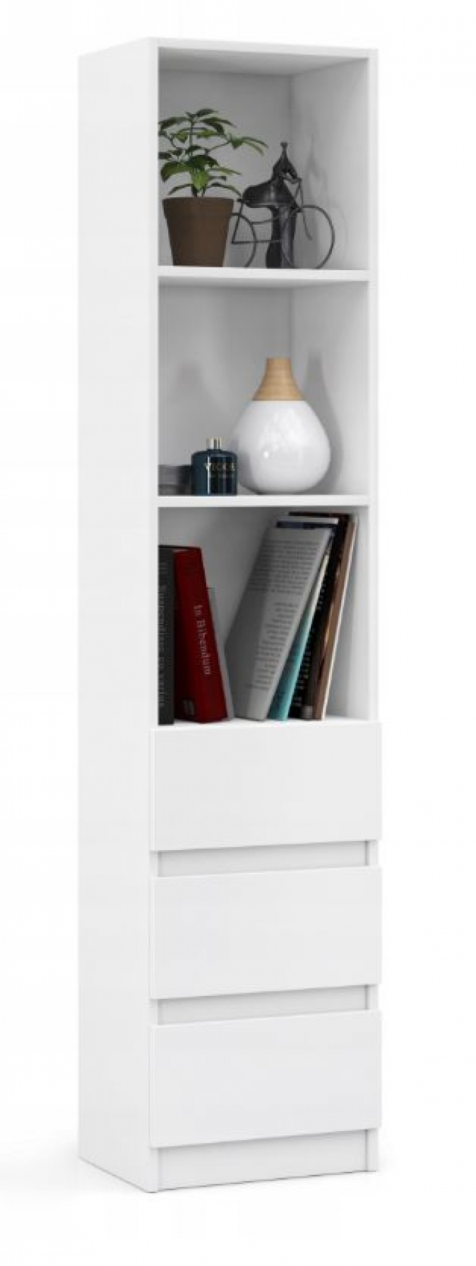 REGAŁ KSIĄŻKI PÓŁKA SEGREGATORY BIUROWY SZAFKA BIAŁY MAT 3 SZUFLADY 40 cm