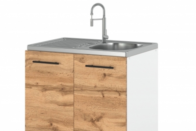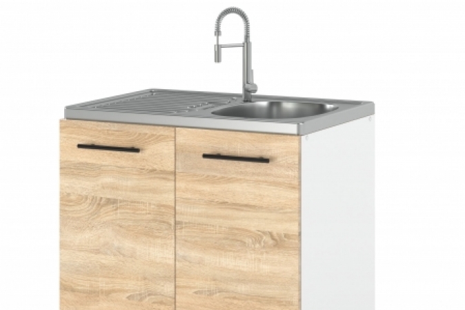 - Optymalna szerokość: Szafka o szerokości 80 cm to idealne rozwiązanie dla większości standardowych zlewów, co gwarantuje perfekcyjne dopasowanie do Twojej kuchni.