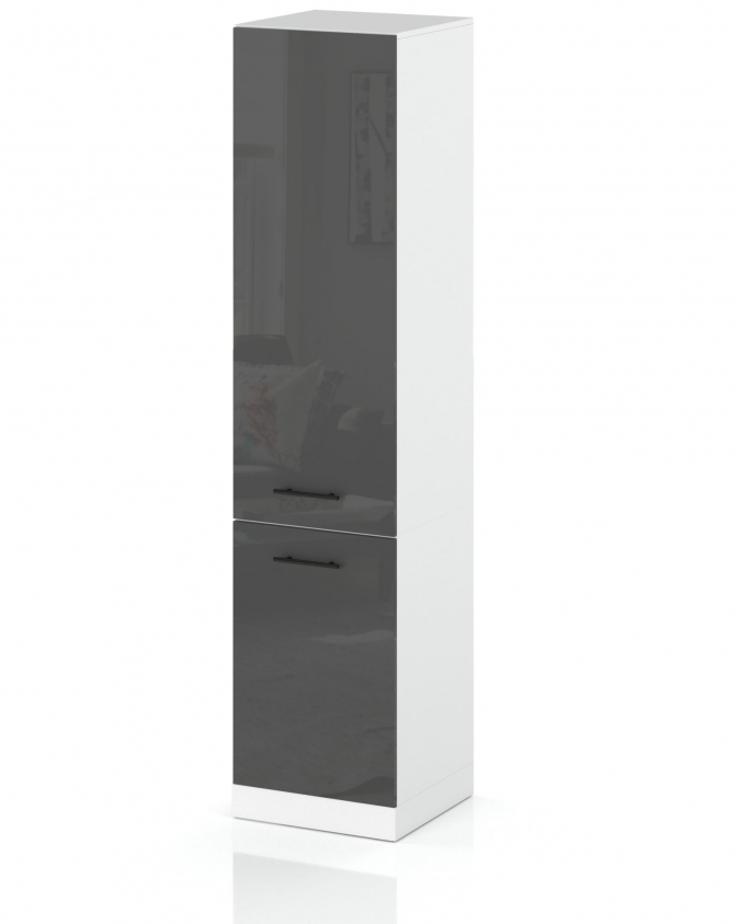 - Wysokość szafki 211cm (nóżki regulowane umożliwiają łatwe dopasowanie przy nierównościach na podłogach)